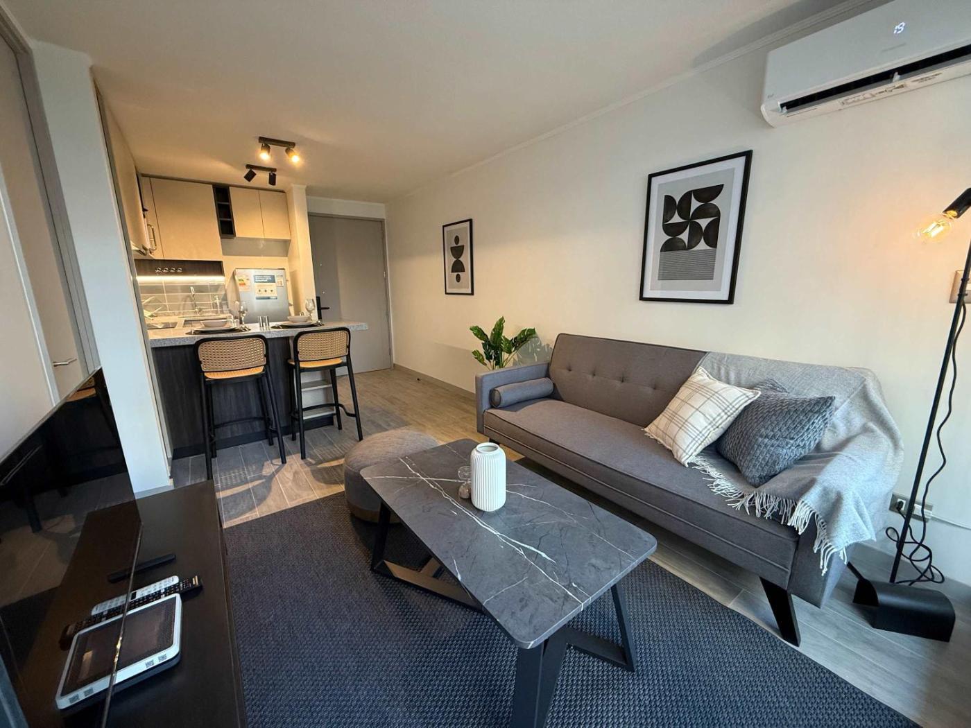 Set in the centre of Santiago, 1.7 km from Movistar Arena and 3.2 km from Museo de la Memoria Santiago, HOM I Cerca del Movistar Arena y Metro Toesca offers free WiFi, a fitness centre and air conditioning. This apartment also has a rooftop pool. The property is non-smoking and is situated 3.6 km from Museum of Pre-Columbian Art.